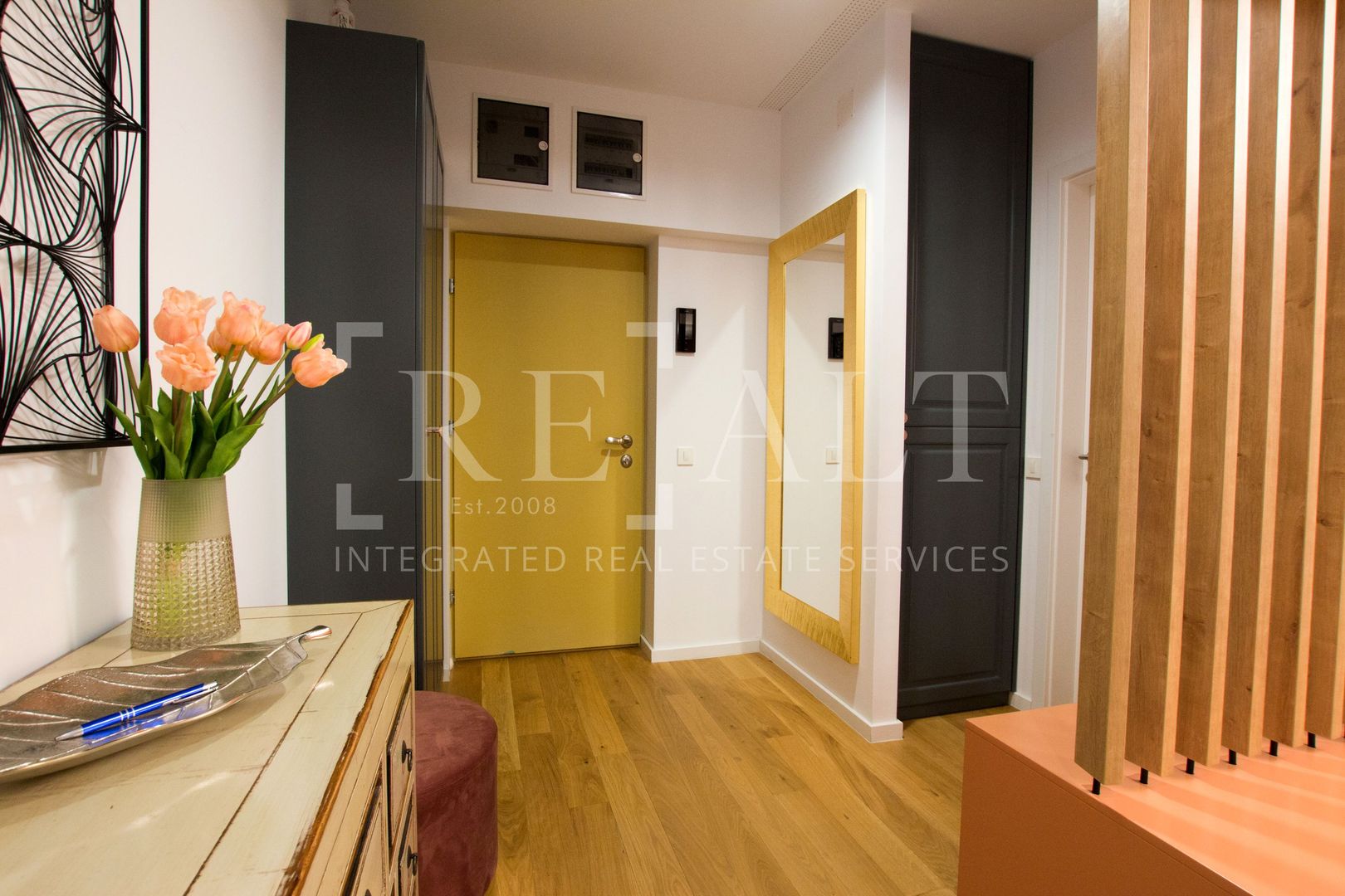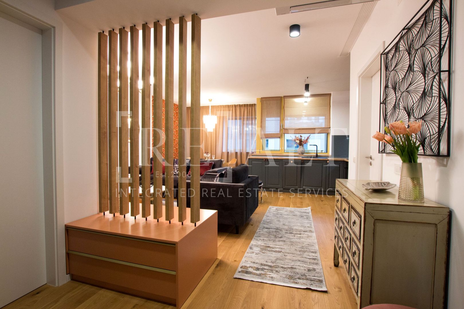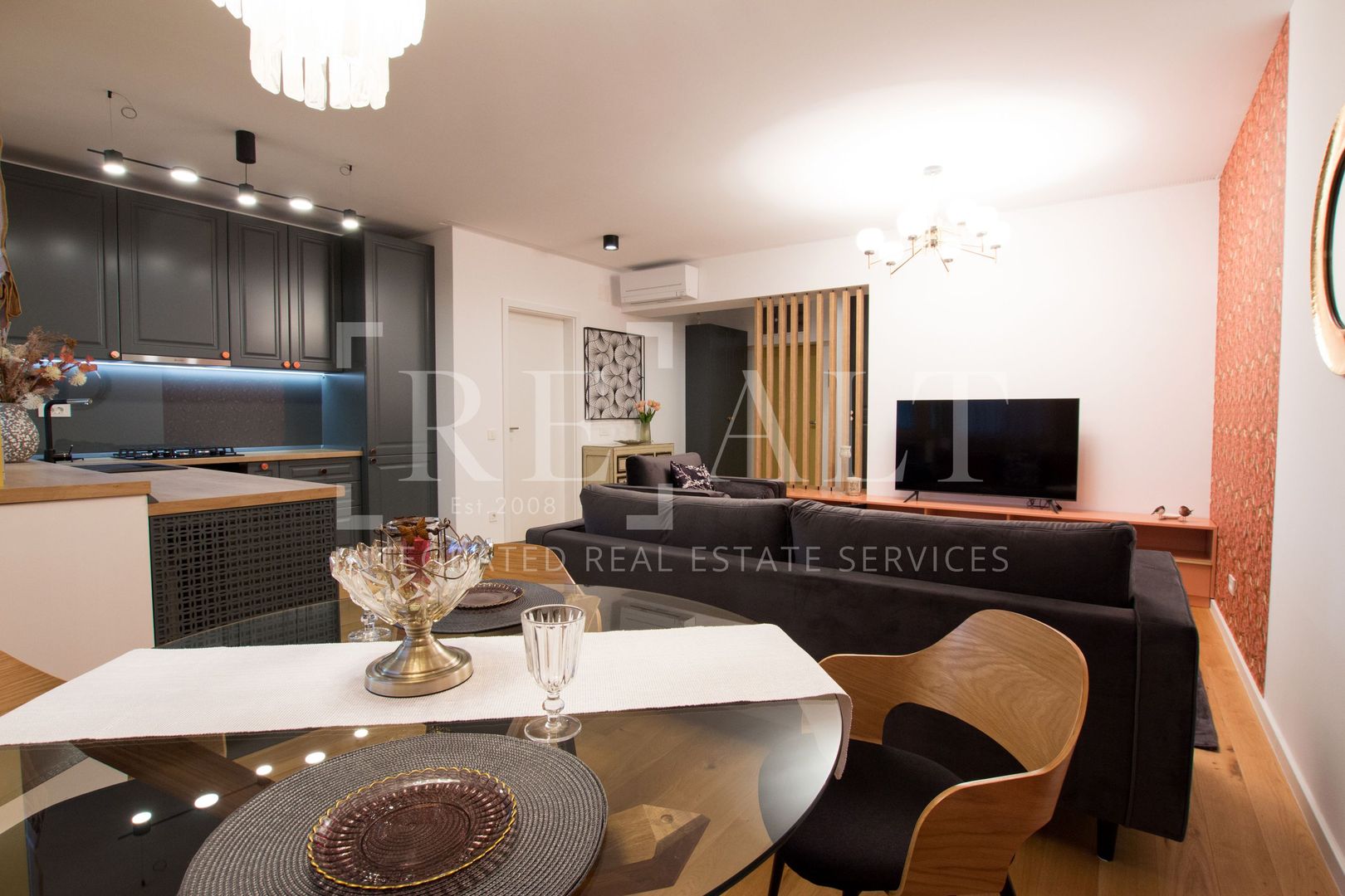 Situata la etajul 2 al unui imobil cu 11 etaje, proprietatea in suprafata utila de aprox 60mp este decomandata. Zona de zi, compusa din living, dinning, bucatarie deschisa, vestibul de accces si grup sanitar este vizibil separata de cea de noapte. Aceasta din urma iti ofera confort si intimitate fiind formata dintr-un dressing si un dormitor cu baie proprie.