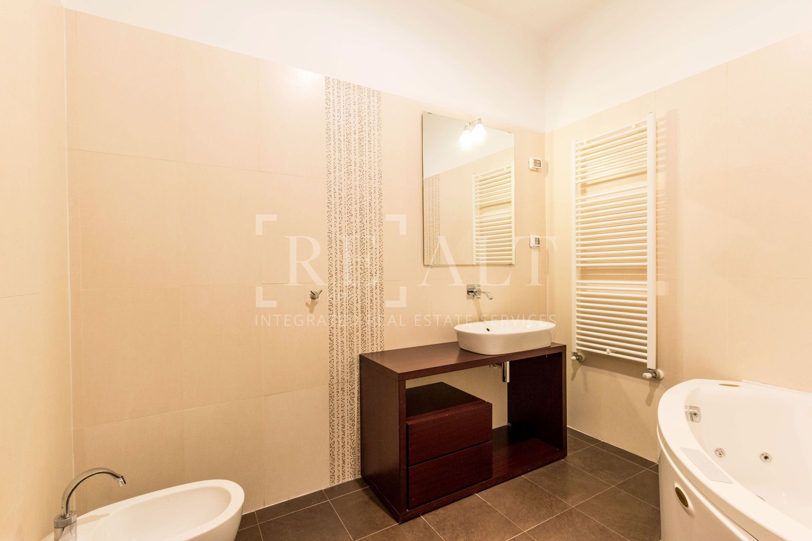 Cat priveste utilitatile, apartamentul detine ferestre de tip termopan, aer conditionat, cablu TV, Internet, centrala termica, scara interioara, usa metalica, interfon, boxa, lift, garaj si paza. Parchetul este din lemn de stejar Sabia si Kambala, iar gresia, faianta portelanata si obiectele sanitare sunt importate din Italia.